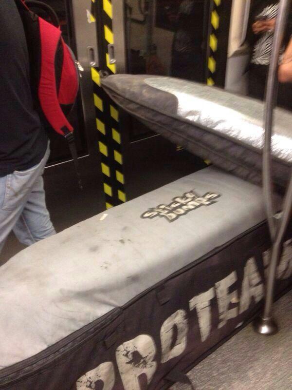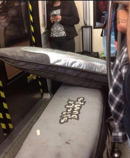El otro día venían unos viejos con unas tinajas de pintura. El metro se empezó a llenar, y cuando frenó las tinajas generaron el efecto zancadilla, y algunas viejas quedaron tan dobladas, que perfectamente podrían hacerse quebrado una pierna.