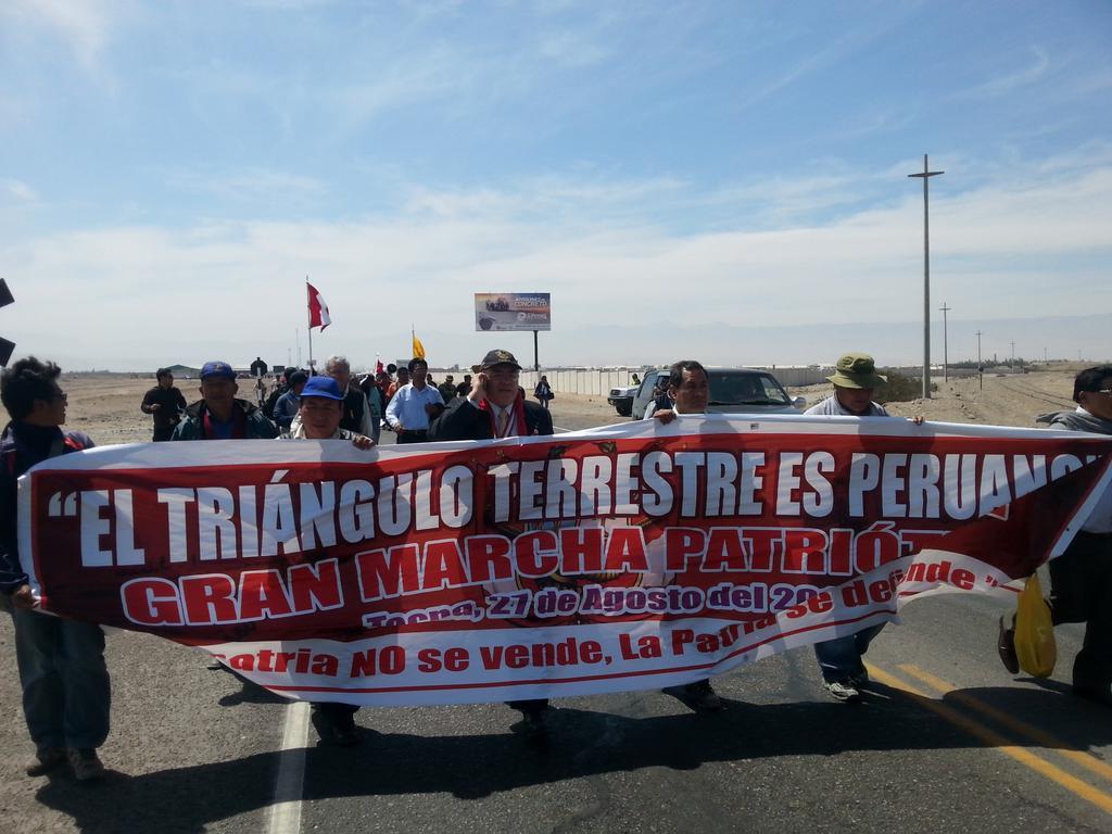 puras pajas, si Chile quiere que no lo hinchen mas los peruanos, es bien simple, tiene que hacer soberanía, hay que buscarle un uso al famoso triangulo, hacerle una buena carretera, implementar una buena playa, construcciones, una caleta pesquera.........., es decir tiene que ocupar la tierra de alguna forma, es el metodo israeli, asentamientos y bien hechos (claro que ellos ocupan terrenos sean o no de ellos), mientras este botado va a seguir siendo tierra de nadie y solo un pedazo mas o menos dibujado en un mapa del pais que lo imprime, susceptible de ser reclamado, pero como los gobiernos chilenos siempre dejan todo botado y esperan que el mercado solucione los problemas, va a seguir siendo un dolor de cabeza.